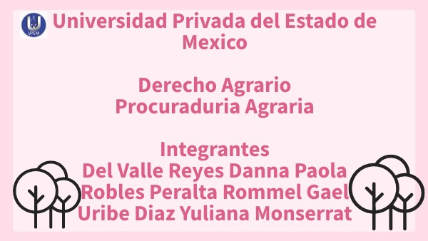 Universidad Privada del Estado de Mexico Derecho Agrario Procuraduria Agraria Integrantes Del Valle Reyes Danna Paola Robles Peralta Rommel Gael Uribe Diaz Yuliana Monserrat