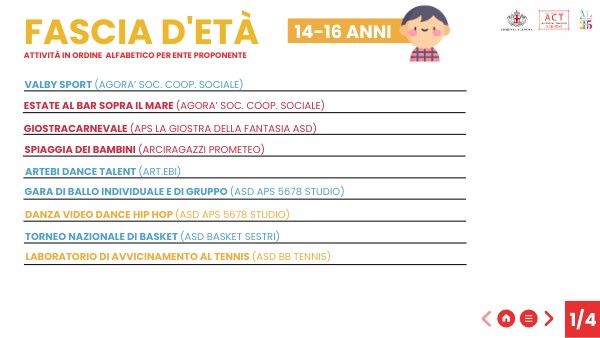 3-6 anni, 6-10 anni, 11-13 anni, 14-16 anni, 16-18 anni