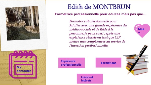 Formatrice Professionnelle pour Adultes avec une grande expérience du médico-sociale et de l'aide à la personne, je peux aussi , après une expérience réussie en tant que CIP, mettre mes compétences au service de l'insertion professionnelle.