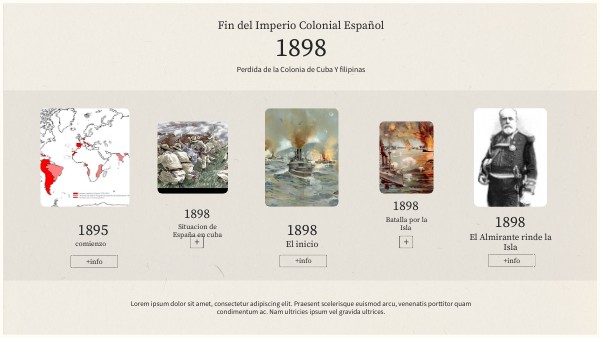 La guerra hispano-estadounidense fue un conflicto bélico que enfrentó a España y Estados Unidos de abril a agosto de 1898, al intervenir Estados Unidos en la guerra de independencia cubana (1895-1898). La derrota de España y la consiguiente pérdida de sus últimas provincias de ultramar dieron lugar en España a la expresión «Desastre del 98».10 Tras su derrota, España perdió Cuba (que quedó bajo tutela de Estados Unidos), Puerto Rico, Filipinas y Guam (que pasaron a ser dependencias territoriales de Estados Unidos). El resto de posesiones españolas del Pacífico fueron vendidas al Imperio alemán mediante el tratado hispano-alemán del 12 de febrero de 1899, por el cual España cedió al Imperio alemán sus últimos archipiélagos ―las Marianas (excepto Guam), las Palaos y las Carolinas― a cambio de 25 millones de pesetas (17 millones de marcos), ya que eran indefendibles por España.