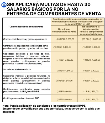 SRI APLICARÁ MULTAS DE HASTA 30 SALARIOS BÁSICOS POR LA NO ENTREGA DE COMPROBANTES DE VENTA
