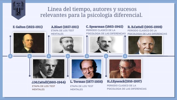 Linea del tiempo, autores y sucesos relevantes para la psicología diferencial.