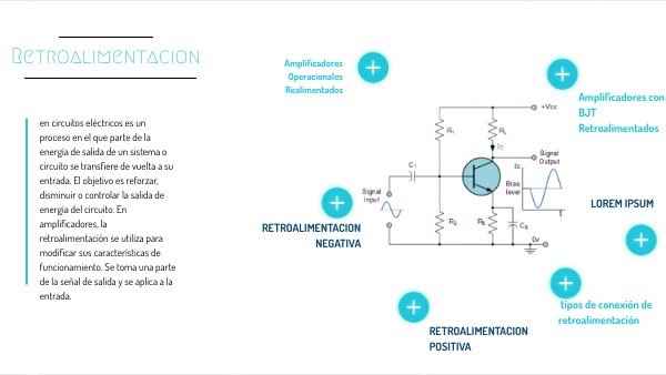 en circuitos eléctricos es un proceso en el que parte de la energía de salida de un sistema o circuito se transfiere de vuelta a su entrada. El objetivo es reforzar, disminuir o controlar la salida de energía del circuito. En amplificadores, la retroalimentación se utiliza para modificar sus características de funcionamiento. Se toma una parte de la señal de salida y se aplica a la entrada.