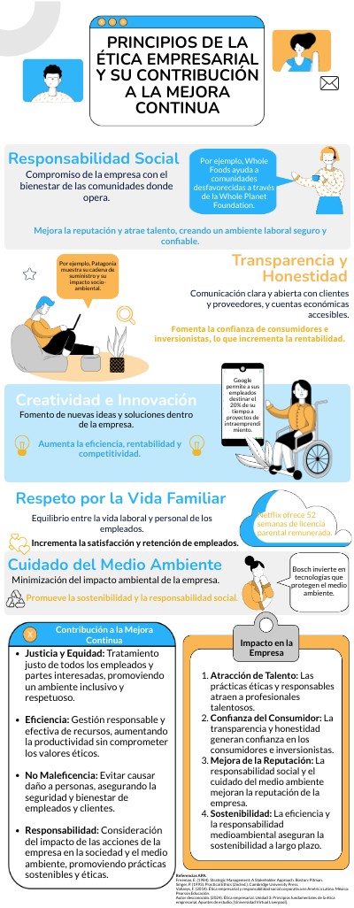Referencias APA.Freeman, E. (1984). Strategic Management: A Stakeholder Approach. Boston: Pitman.Singer, P. (1993). Practical Ethics (2nd ed.). Cambridge University Press. Vallaeys, F. (2014). Ética empresarial y responsabilidad social corporativa en América Latina. México: Pearson Educación. Autor desconocido. (2024). Ética empresarial. Unidad 3: Principios fundamentales de la ética empresarial. Apuntes de estudio, [Universidad Virtual Liverpool].