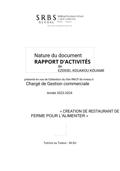 COMPTE RENDU 1 :ACTIONS COMMERCIALES ......................................................................3ACTIONS ET TECHNIQUES COMMERCIALES A MENER POUR NOTRE RESTAURANT ..3OUTILS INDISPENSABLES A LA FIDELISATION DES CLIENTS .............................................4COMPTE RENDU 2 : PLAN D’ACTION PROMOTIONNELLES ET PUBLICITAIRES ..............9BESOINS ET OBJECTIFS DE LA CAMPAGNE ...........................................................................9ORGANISATION DU PLAN .......................................................................................................... 11COMPTE RENDU 3 : ACTIONS EVENEMENTIELLES ............................................................. 14OBJECTIFS .................................................................................................................................... 14COMPTE RENDU 4 : INDICATEURS DE SUIVI LOGISTIQUE ................................................ 19OUTILS ........................................................................................................................................... 19COMPTE RENDU 5: Title: Activity Report: Establishing or Developing Partnerships for a Spiced Chicken Restaurant and Farm ......................................................................................... 24