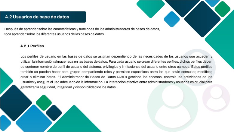 Después de aprender sobre las características y funciones de los administradores de bases de datos, toca aprender sobre los diferentes usuarios de las bases de datos.