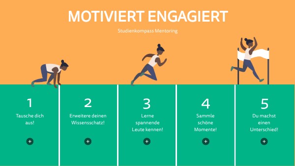 Engagement macht Spaß, wenn es auch dich persönlich weiterbringt. Überlege dir, was du durch dein Engagement bisher gelernt hast. Hast du Erfahrungen im Anleiten von Gruppen und Organisieren von Veranstaltungen gesammelt? Hast du in der App oder beim Mentoring-Workshop ein spannendes, neues Thema für dich entdeckt? Für dein Engagement als Mentor und Mentorin sowie für deine Teilnahme an Studienkompass-Weiterbildungen stellen wir dir gerne Zertifikate aus, die du z. B. für Bewerbungen nutzen kannst.