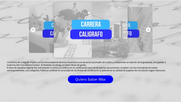 La carrera de Calígrafo Público tiene como objetivo formar expertos capacitados para actuar en consonancia con las leyes 20.243 y 20.859, que rigen la profesión. El Calígrafo Público o Perito Calígrafo se desempeña en ámbitos judiciales y privados, analizando documentos, firmas, papeles e impresiones. La legislación en vigor establece las competencias profesionales del título.