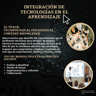 Marco teórico que describe los conocimientos que lo profesores necesitan para integrar de manera efectiva la tecnología en la enseñanza. Se basa en la idea de que la enseñanza efectiva con tecnología requiere una comprensión compleja y matizada de tres tipo de conocimiento. (Mishra y Koehler, 2006)