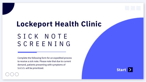 Complete the following form for an expedited process to receive a sick note. Please note that due to current demand, patients presenting with symptoms of S.A.S.S. will be prioritized.