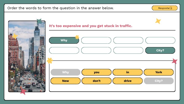 Ordene as palavras para formar a pergunta da resposta abaixo.