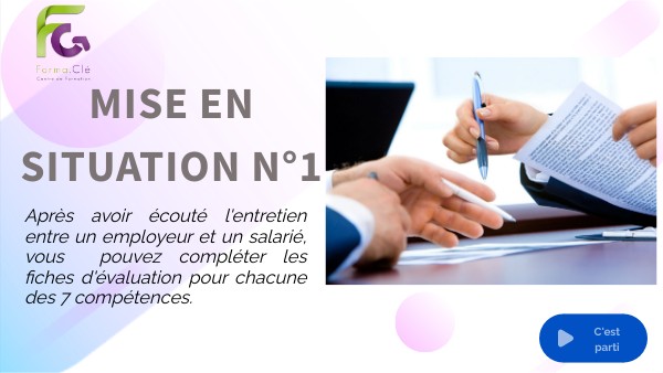 Après avoir écouté l'entretien entre un employeur et un salarié, vous pouvez compléter les fiches d'évaluation pour chacune des 7 compétences.