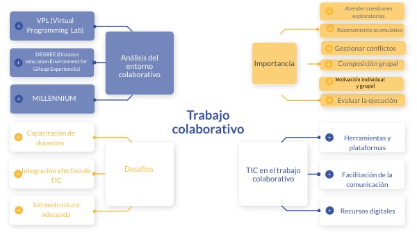 El trabajo colaborativo es una metodología poderosa que, cuando se implementa adecuadamente, puede máximizar el potencial de un grupo para lograr objetivos comunes. Su fundamento rádica en la interdependencia positiva, donde el exito individual esta intrínsecamente vinculado con el éxito colectivo. Esta forma de trabajo no solo facilita el intercambio de conocimientos y habilidades, fomentando un aprendizaje más profundo, sino que también desarrolla habilidades sociales cruciales como la comunicación efectiva, la cooperación y la resolución de conflictos. Sin embargo para que el trabajo colaborativo sea efectivo, es esencial que los miembros del grupo comprenan y respeten la importancia de la responsabilidad individual y grupal. La implementación de estructuras claras para la evaluación y la coordinación puede aminorar algunos de los desafíos más comunes, como la desigualda en la contribución y los conflictos personales. La literatura académica respalda la eficacia del trabajo colaborativo , destacando que la diversidad de ideas y perpertivas resultante puede conducir a soluciones mas creativas e innovadoras (Johnson & Johnson, 1999). Además, estudios han demostrado que los grupos que trabajan de manera colaborativa tienden a estar más motivados y comprometidos con las tareas que aquellos que trabajan de manera individual Slavin, 1995) Por lo tanto el trabajo colaborativo, sustentado en principios de interdependencia y responsabilidad compartida, es una herramienta valiosa para alcanzar objetivos comunes. Su éxito dpende de una coordinación efectiva del compromiso de cada mienbro, convirtiendose en un catalizador para el desarrollo de competencias tanto técnicas como socioemocionales, esenciales en el mundo actual.