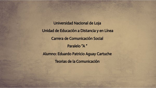 Universidad Nacional de Loja Unidad de Educación a Distancia y en Línea Carrera de Comunicación Social Paralelo “A “ Alumno: Eduardo Patricio Aguay Cartuche Teorias de la Comunicación