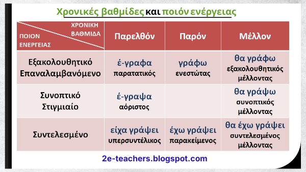 Χρονικές βαθμίδες και ποιόν ενέργειας