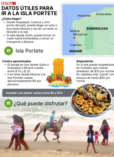 - Ir en bote desde Muisne a la Isla Portete cuesta aproximadamente $5 por persona.