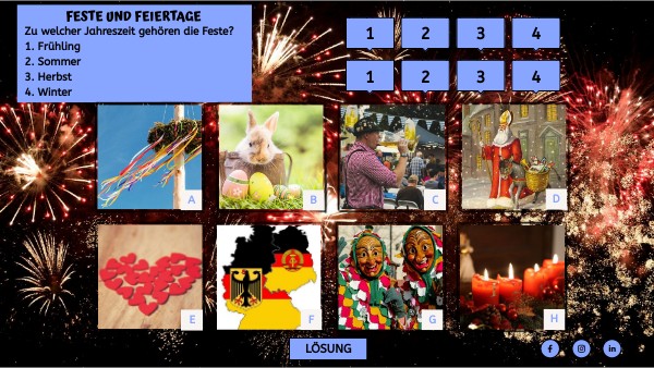 Zu welcher Jahreszeit gehören die Feste? 1. Frühling 2. Sommer 3. Herbst 4. Winter