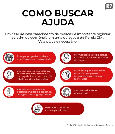 Em caso de desaparecimento de pessoas, é importante registrar boletim de ocorrência em uma delegacia de Polícia Civil. Veja o que é necessário: