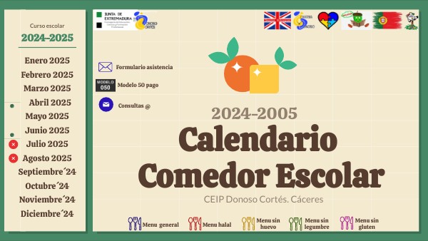 Todos los meses, se lanzará desde el centro educativo un formulario google-doc para que los usuarios del comedor los rellenen y lo envíen . Los usuarios que hagan uso del comedor todos los días de todos los mese del curso, solamente deberán rellenar el formulario general que se enviará en el mes de septiembre (10-09-24). El plazo máximo para realizarlo será el día 25 de cada mes.