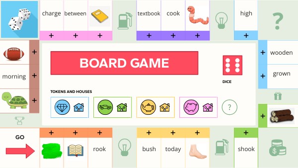 Each player must choose a color: blue, green, yellow or pink. He/she gets a tile to mark his/her position and 10 houses to indicate the properties he/she acquires during the game. Each player must take the tile of his/her color and place it on the starting square. To start playing, click on the dice and move your piece to the corresponding square. In each square there must be one or more questions. If you get it right, place one of your houses on that square - congratulations, you have a new property! Special squares: the squares with icons contain penalties such as "Player pays electricity tax: loses 2 houses". Get the question right to avoid the penalty! The player who has the highest number of houses on the board once all the squares are occupied wins.