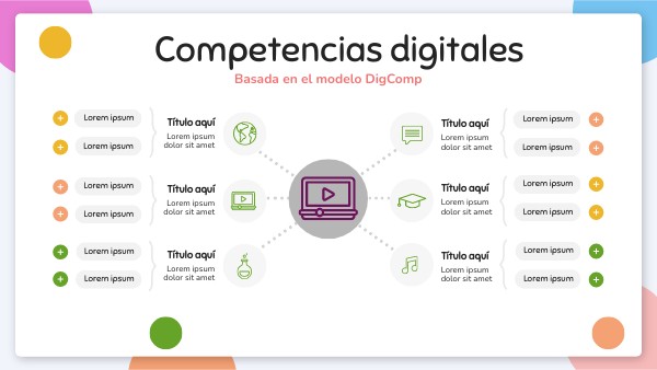 Las competencias digitales presentadas se basan en el modelo DigComp, en el cual encontramos cinco áreas clave de competencias digitales.