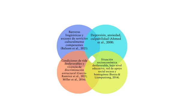 Situación socioeconómica desfavorable, bajo nivel educativo, red de apoyo social escasa y homogénea (Benza & Liamputtong, 2014).