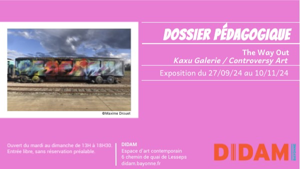 Jeu d'écriture à caractère subversif voire illégal, le graffiti est entré par la porte des cultures urbaines émergentes en France dans les années 1980, après avoir essaimé dans les rues américaines. Considéré tantôt comme un art tantôt comme du vandalisme dans son expression originelle, le graffiti a connu depuis de multiples déclinaisons esthétiques. L'exposition élaborée par Kaxu et le galeriste parisien Amine Bouziane (commissaire en 2018 de l'exposition "Primal Scream" à La Défense) se propose de donner un aperçu sur le graffiti à travers le travail de dix artistes emblématiques du mouvement street art. Blade, T Kid, Maxime Drouet, Ulysse Genet, Lutes, Blaise, Julien Marmar, Sino, Feito et Risote seront ainsi présents dans le parcours présenté cette année au Didam. Un ensemble d'œuvres embrassant tout autant le formalisme des premiers "writers" en reproduisant de l'écrit sur toile que le passage vers une démarche plus créative et engagée avec comme support et contexte le mobilier urbain, métro et murs. Ce, jusqu'à la reproduction de bouts de métro recouverts d'inscriptions et de peintures à la bombe, provoquant un effet immersif dans le contexte de ces années de liberté ! Comme chaque année, ce projet vient nourrir la programmation du Festival Points de Vue, rendez-vous incontournable autour du Street art dans la région, coordonné par la Communauté d’Agglomération Pays Basque et la Ville de Bayonne. Pour cette 8ème édition, du 16 au 20 octobre 2024, le village du festival sera à nouveau installé sur la rive droite de Bayonne, Square Gambetta, non loin des structures culturelles partenaires de l'évènement (Kaxu, L'Atalante, le Didam et le Gaztetxe).