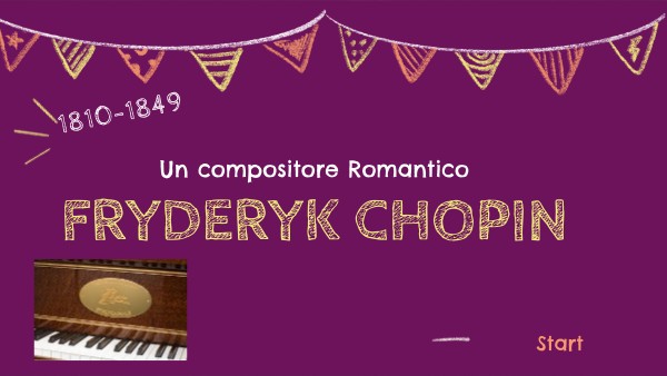 Fryderyk Franciszek Chopin nacque in una piccola cittadina vicino Varsavia, in Polonia, il 22 febbraio 1810. Egli Iniziò fin subito i suoi studi in campo musicale dimostrando grandi capacità all' età di sette anni in quanto apprende dalla madre i primi insegnamenti musicali. Chopin intraprese, da giovane, anche studi di tipo storico riguardo, soprattutto, la storia della sua nazione: la Polonia. Il suo paese fu una delle più importanti fonti d' ispirazione per le sue sinfonie poiché riuscì ad evocare in lui aspirazioni, sofferenze e desideri. Nel 1817 pubblica la sua prima composizione: "la polacca in sol minore" in cui rivela delle particolarità che lo renderanno celebre e la predilizione per temi dolci ed elaborati.