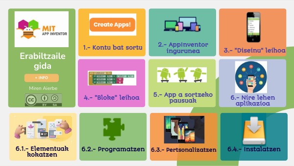 App inventor Android-en sistema eragilerako aplikazio mugikorrak diseinatzeko tresna da. Googlek sortu zuen, eta, gero, MITek (Massachussets Institute of Technology) hartu zuen bere gain; orain, MIT mantenu eta garapenaren arduraduna da. Programatzeko modua Scratch-en antzekoa da, batu eta puzzle gisa konbinatzen diren blokeak erabiliz. Ikusi erabiltzaile azkarraren gida hau, hasi aplikazioa lehen eskutik programatzen eta... ondo pasa! !
