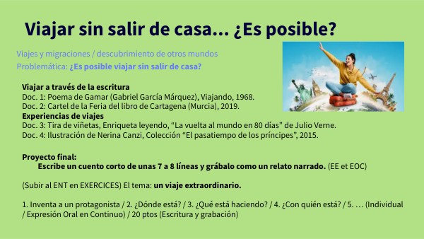 Viajes y migraciones / descubrimiento de otros mundosProblemática: ¿Es posible viajar sin salir de casa?