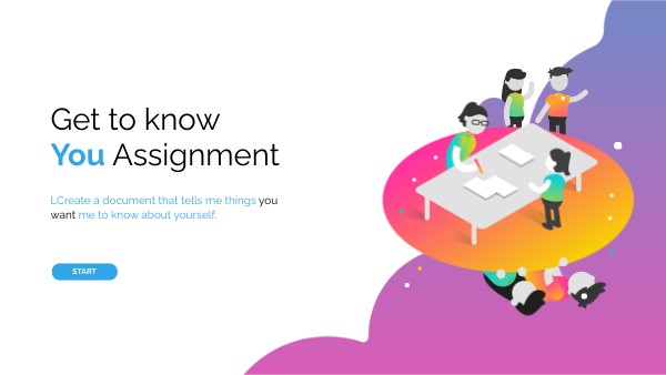 Make sure to organize the document to group like items together. Example if you're talking about your favorite activities and what you would like to get out of this class group any information about each together and format the family images as one color and the favorites as a different golor.