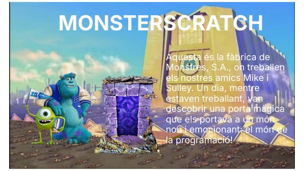 Aquesta és la fàbrica de Monstres, S.A., on treballen els nostres amics Mike i Sulley. Un dia, mentre estaven treballant, van descobrir una porta màgica que els portava a un món nou i emocionant: el món de la programació!