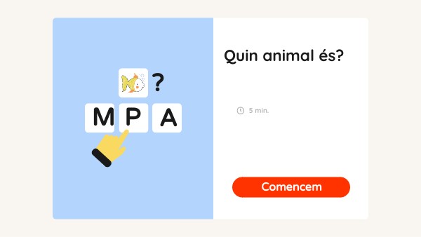 Hola, a continuació us posaré unes imatges d'animals treballats a classe i vosaltres heu de triar quina és la paraula correcta per anomenar aquest animal. Bona sort!