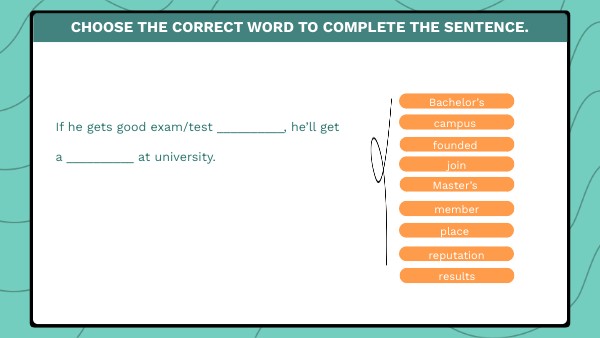 If he gets good exam/test __________, he’ll get a __________ at university.