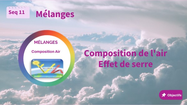 5. Composition de l'air6. Composition air (quizz)7. L'atmosphère 8. Effet de serre 9. Effet de serre (QCM) 10. Effet de serre (légender) 11. Vocabulaire en anglais
