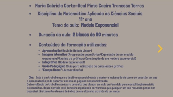 - Imagem Interativa (Progressão geométrica/Expressão de um modelo exponencial/Análise de gráficos/Construção de um modelo exponencial)