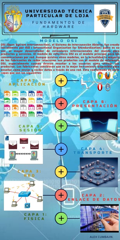 OSI (Open System Interconnection), el Sistema de Interconexión Abierta, fue creado inicialmente por ISO ( International Organization for Standardization) quien es su vez, el mayor desarrollador de estándares internacionales del mundo para productos y servicios. El modelo de referencia OSI es el modelo principal para las comunicaciones por red. Aunque existen otros modelos, en la actualidad la mayoría de los fabricantes de redes relacionan sus productos con el modelo de referencia OSI, especialmente cuando desean enseñar a los usuarios cómo utilizar sus productos. Los fabricantes consideran que es la mejor herramienta disponible para enseñar cómo enviar y recibir datos a través de una red. Esta conformada de siete capas que son las siguientes: