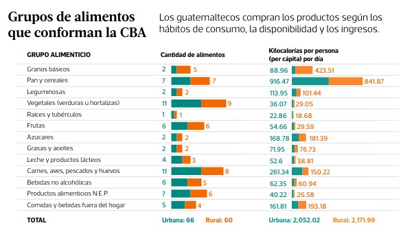 Grupos de alimentos que conforman la CBA