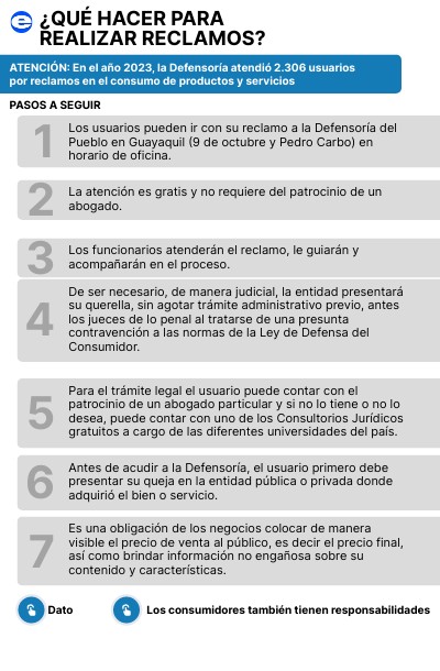 Los usuarios pueden ir con su reclamo a la Defensoría del Pueblo en Guayaquil (9 de octubre y Pedro Carbo) en horario de oficina.