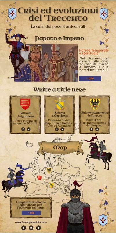 Nel Trecento si assiste alla crisi politica di Chiesa e Impero, i due poteri universali.