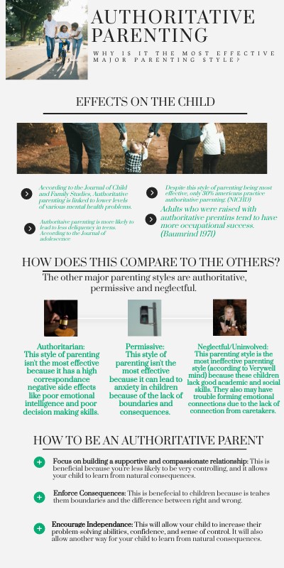 Cherry, Kendra. “Do You Have an Authoritative Parenting Style?” Verywell Mind, 5 July 2023, www.verywellmind.com/what-is-authoritative-parenting-2794956. “Authoritative Parenting: Research-Backed Best Parenting Style.” Www.theyouschool.com, www.theyouschool.com/blog/authoritative-parenting#:~:text=The%20Rewards%20of%20Authoritative%20Parenting%3A&text=It%20promotes%20self%2Dcontrol%2C%20moral. Accessed 12 June 2024. Hayek, Joyce, et al. “Authoritative Parenting Stimulates Academic Achievement, Also Partly via Self-Efficacy and Intention towards Getting Good Grades.” PLOS ONE, vol. 17, no. 3, 30 Mar. 2022, p. e0265595, www.ncbi.nlm.nih.gov/pmc/articles/PMC8967044/, https://doi.org/10.1371/journal.pone.0265595. Cherry, Kendra. “Uninvolved Parenting and Its Effects on Children.” Verywell Mind, 2023, www.verywellmind.com/what-is-uninvolved-parenting-2794958. “Promoting Children’s Independence: What Parents Say vs Do.” National Poll on Children’s Health, 16 Oct. 2023, mottpoll.org/reports/promoting-childrens-independence-what-parents-say-vs-do#:~:text=Research%20shows%20encouraging%20independence%20fosters. Zenhabits. “On Compassion towards Our Children.” Zen Habits, 22 Jan. 2009, zenhabits.net/on-compassion-towards-our-children/#:~:text=That. Accessed 23 July 2024. Henry, Paige. “What Is Permissive Parenting? Definition, Pros, and Cons | Betterhelp.” Www.betterhelp.com, 20 Feb. 2024, www.betterhelp.com/advice/parenting/what-is-permissive-parenting-definition-pros-and-cons/. “Authoritarian Parenting: Its Impact, Causes, and Indications | Psychology Today.” Www.psychologytoday.com, www.psychologytoday.com/us/blog/overcoming-destructive-anger/202402/authoritarian-parenting-its-impact-causes-and-indications#:~:text=Authoritarian%20parenting%20has%20been%20found.
