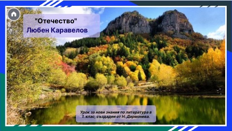 Обичам те, мое мило Отечество! Обичам твоите балкани, гори, сипеи, скали и техните бистри и студени извори!