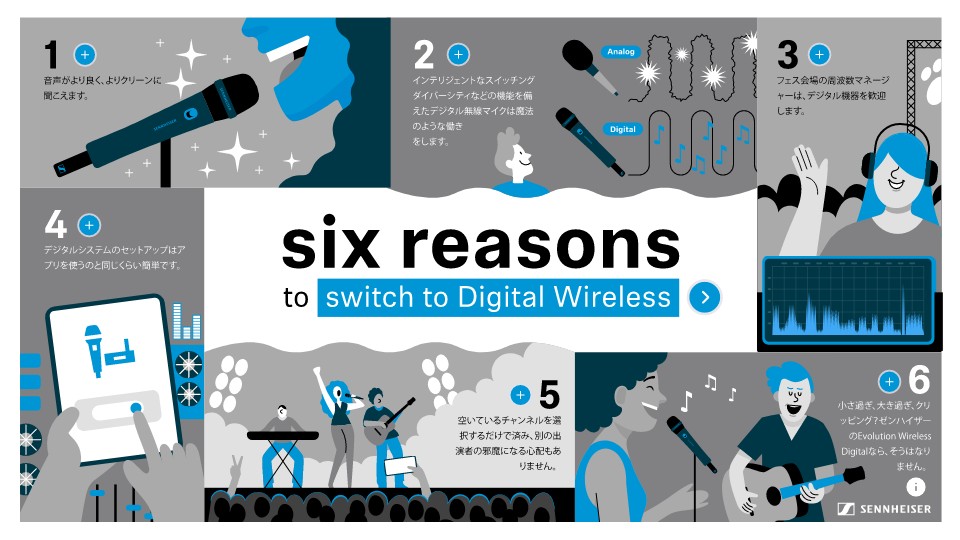 耳に聞こえる音はもちろんアナログです。しかし、だからといってデジタル無線マイクの多くのメリットを多くの人が放棄しなければならない理由にはなりません。一部の環境では、最終的にアナログからデジタルに切り替えることが重要になる場合もあります。変更すべき主な6つの理由を次に示します。