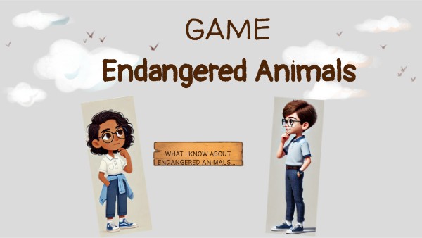 The student must guess the animal of the animal and show about the reasons of the endangered to each animal, habits and more topics, finally the student has to response some questions to evaluate.