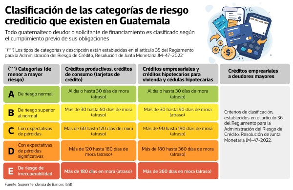 Clasificación de las categorías de riesgo crediticio que existen en Guatemala