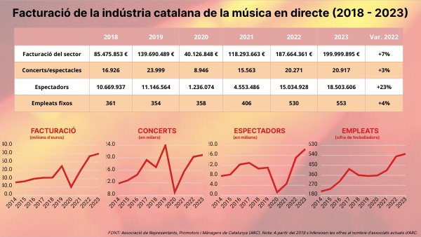 Facturació de la indústria catalana de la música en directe (2018 - 2023)