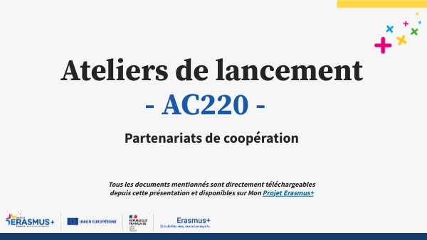 Tous les documents mentionnés sont directement téléchargeables depuis cette présentation et disponibles sur Mon Projet Erasmus+