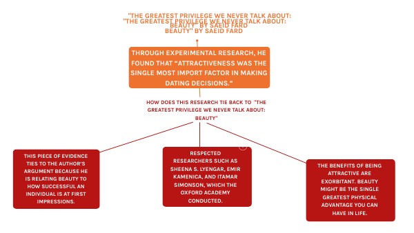 This piece of evidence ties to the author’s argument because he is relating beauty to how successful an individual is at first impressions.
