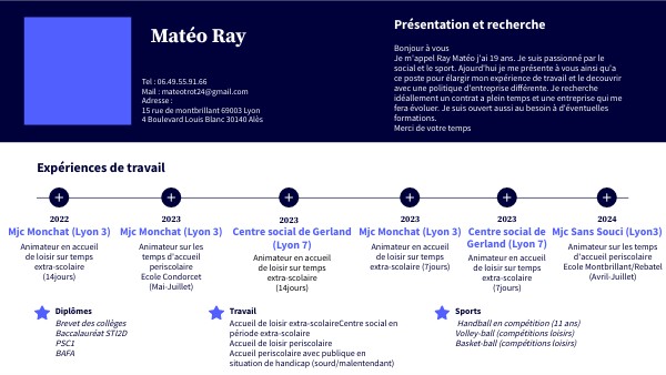 Tel : 06.49.55.91.66 Mail : mateotrot24@gmail.com Adresse : 15 rue de montbrillant 69003 Lyon 4 Boulevard Louis Blanc 30140 Alès
