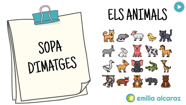 CLICA A SOBRE DE LES IMATGES QUE ES CORRESPONEN AMB LES PARAULES DE LA LLISTA. A CONTINUACIÓ, CLICA EL BOTÓ: